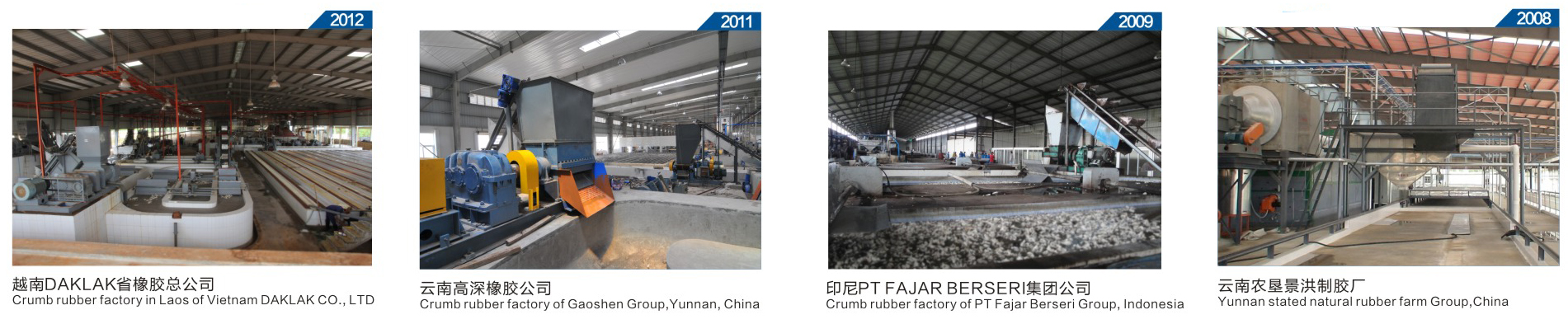 主要加工設(shè)備:5號(hào)膠與20號(hào)標(biāo)膠全套加工設(shè)備,如壓薄機(jī)、縐片機(jī)、撕粒機(jī)、破碎機(jī)、烘干機(jī)等